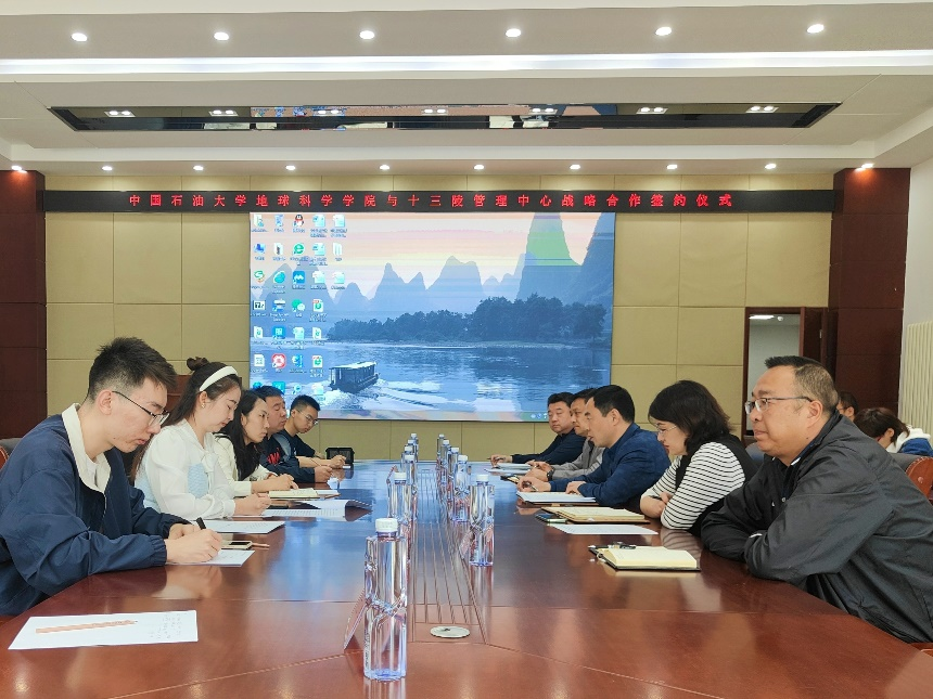 4月19日上午,地學(xué)院赴明十三陵管理中心開展交流座談會(huì)并舉行了共建簽約暨揭牌儀式。中國(guó)石油大學(xué)(北京)地球科學(xué)學(xué)院黨委副書記王茹與明十三陵管理中心黨組成員副主任袁江玉出席了揭牌儀式,中國(guó)石油大學(xué)(北京)地球科學(xué)學(xué)院團(tuán)委書記姚夢(mèng)竹、專職輔導(dǎo)員劉俊鑫,兼職輔導(dǎo)員王思聰、孟笑、明十三陵管理中心文物科、遺產(chǎn)中心、對(duì)外交流專班和定陵博物館等相關(guān)部門人員及學(xué)生代表參加此次會(huì)議。