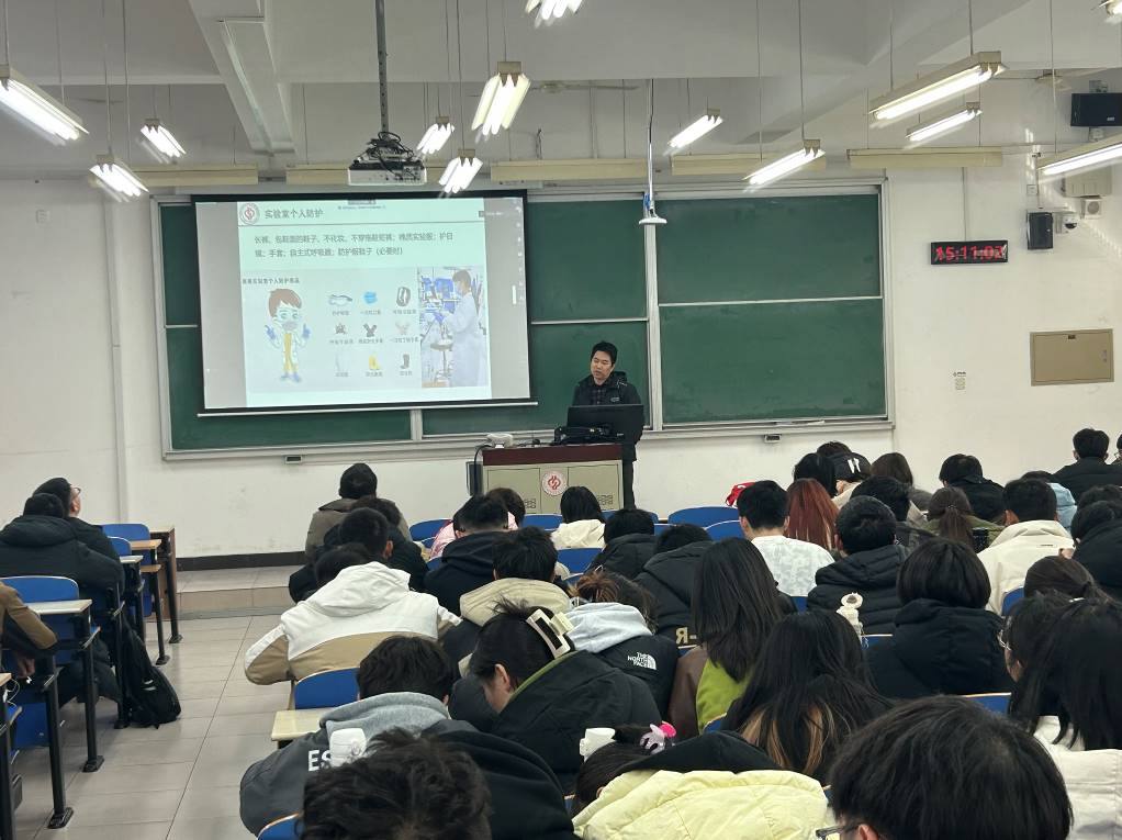 安全員師生寶從實(shí)驗(yàn)室個(gè)人防護(hù)、用電安全、化學(xué)品安全、用氣安全、消防安全、實(shí)驗(yàn)設(shè)備規(guī)范操作要求以及實(shí)驗(yàn)室應(yīng)急處置方法對(duì)學(xué)生進(jìn)行了專項(xiàng)安全教育培訓(xùn),并對(duì)進(jìn)入實(shí)驗(yàn)室的學(xué)生提出了相應(yīng)的要求和建議。