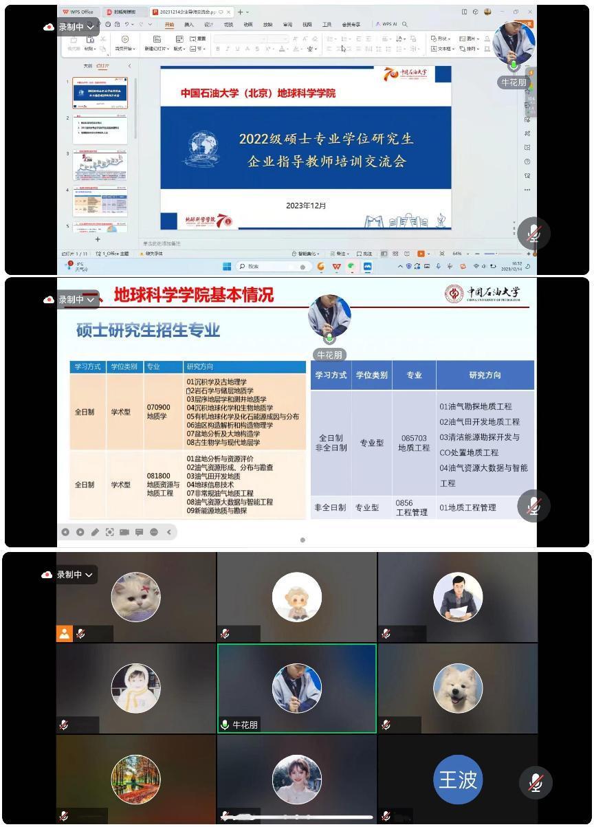 根據(jù)研究生院《關(guān)于開展2023年碩士專業(yè)學(xué)位研究生指導(dǎo)教師培訓(xùn)工作的通知》,為使我院碩士專業(yè)學(xué)位研究生校企導(dǎo)師盡快熟悉學(xué)校專業(yè)學(xué)位研究生教育相關(guān)政策與要求,強化導(dǎo)師立德樹人職責(zé),提升指導(dǎo)能力和水平,地球科學(xué)學(xué)院于12月14日下午14:30-17:30,采用線上會議方式,集中組織2022級碩士專業(yè)學(xué)位研究生企業(yè)導(dǎo)師參加培訓(xùn)交流會。