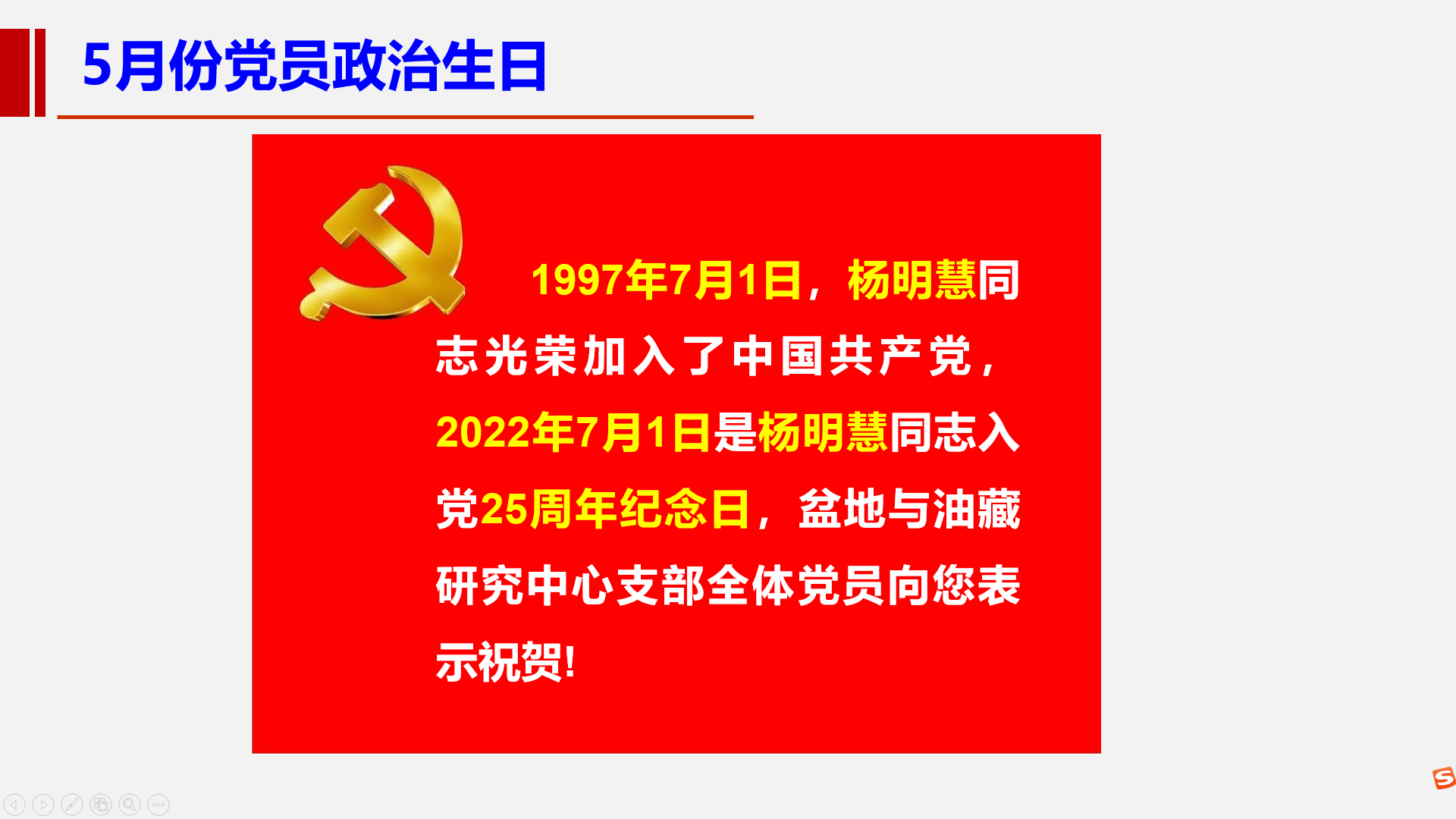 第二階段為“黨員組織生活”。支部黨員集體為7月份、9月份入黨的楊明慧、王洪玉、邱楠生、師生寶、張劍鋒共五位同志過政治生日,強調了“及時交納黨費”的重要性,最后集體重溫了入黨誓詞。