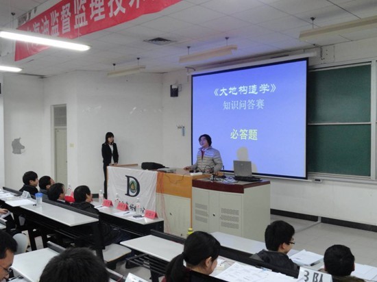由中國石油大學(xué)(北京)地球科學(xué)學(xué)院舉辦,地質(zhì)愛好者協(xié)會承辦的中國石油大學(xué)(北京)第三屆“大地構(gòu)造知識競賽”于2012年11月5日在三教105舉行,地球科學(xué)學(xué)院劉洛夫書記,謝慶賓副院長,童亨茂老師,楊明慧老師,崔卓導(dǎo)員出席了本次競賽。比賽由任課老師童亨茂主持,并與楊明慧老師一起負(fù)責(zé)出題。賽前,劉洛夫書記發(fā)表講話,對地學(xué)院學(xué)生提出了殷切期待。