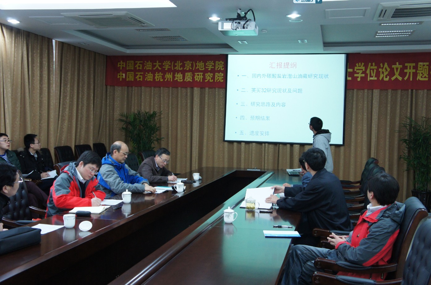 3月20日、23日,在地學(xué)院分黨委書記劉洛夫、研究生工作主管院長季漢成的帶領(lǐng)下,以及學(xué)院相關(guān)學(xué)科教授一行,分別前往中石油勘探開發(fā)研究院西北分院、杭州地質(zhì)研究院舉行2011級專業(yè)學(xué)位碩士論文開題報告會。