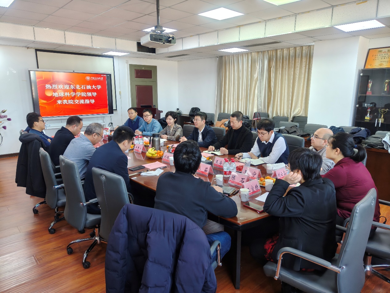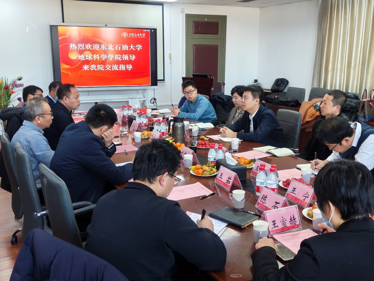 2025年1月10日,東北石油大學地球科學學院黨委書記韋丹寧、院長孫雨一行8人到我院走訪交流。我院黨委書記姜福杰、院長王貴文等8人參加了會議。
