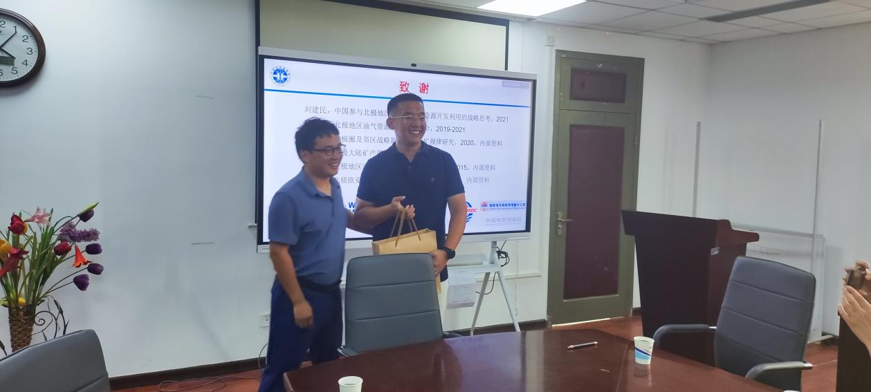 張凱遜副研究員開展了題為“北極地區油氣資源潛力及戰略思考”的學術報告,他從北極油氣資源的研究意義和研究現狀出發,運用油氣資源評價的相關方法對北極油氣資源建立了一整套完備的評價體系,并且對北極地區的油氣資源稟賦和產業現狀進行了深入的介紹。張凱遜副研究員精彩的報告激發了在場師生對北極油氣資源潛力的興趣,并就北極油氣資源形成地質條件等話題展開熱烈的討論和交流。