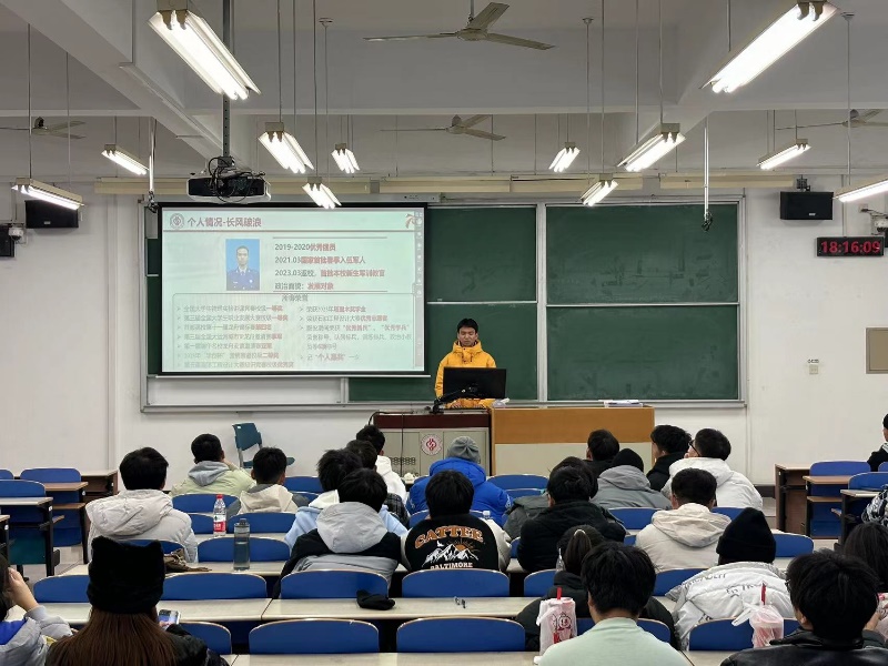 為扎實推進學習貫徹習近平新時代中國特色社會主義思想主題教育,增強學生國防安全觀念,貫徹落實國家征兵政策,幫助學生全面了解應征入伍政策,鼓勵和引導學生響應國家號召投身軍營,12月3日,地球科學學院面向2023級本科新生舉辦“國防教育暨征兵政策宣講會”。地球科學學院2023級新生輔導員馬文龍參加宣講會,特別邀請學校石大國防社主席、優秀退役大學生代表張健宇和劉堯做征兵宣講和心得分享,學院全體新生參加宣講會。