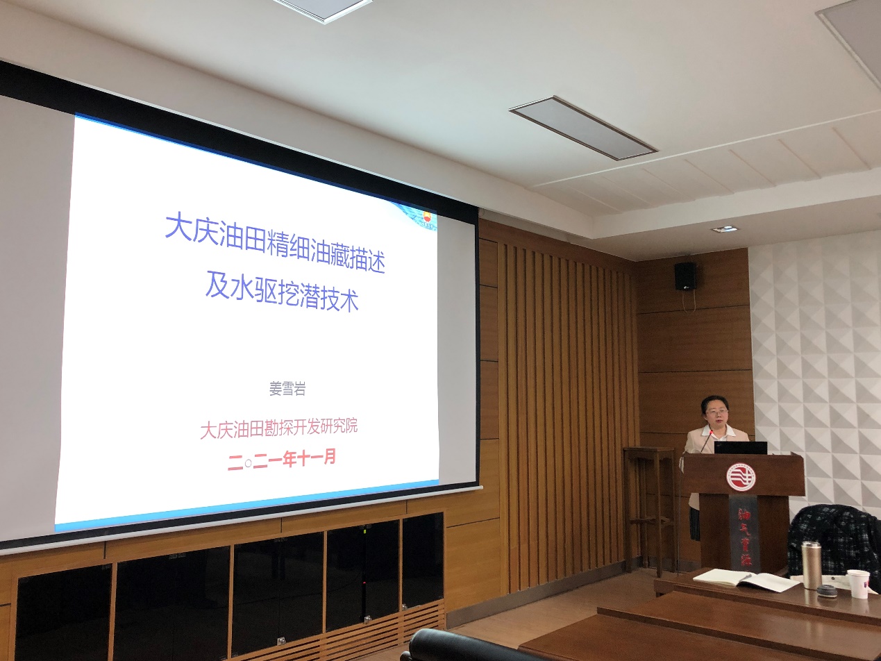 2021年11月5日下午,地球科學學院油氣勘探與開發地質系邀請大慶油田有限責任公司勘探開發研究院企業技術專家姜雪巖高級工程師,在地質樓204開展了主題為“大慶油田精細油藏描述及水驅挖潛技術”的學術報告,由系副主任李慶副教授主持,我校約五十位師生及十余位企業專家到場參加了本次學術沙龍。