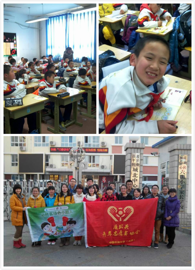 石大地學(xué)院蒲公英青協(xié)于12月16日及12月23日組織我校20名志愿者赴昌平區(qū)城北中心六街小學(xué)完成了本學(xué)期最后兩次必勝客“綠色小超人”環(huán)保支教活動(dòng)。