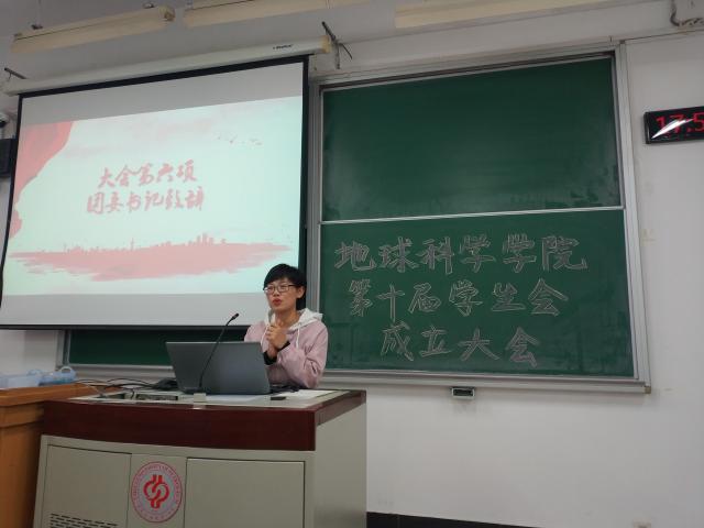 地學院團委書記費葳葳為第十屆學生會部長頒發聘書,對新一屆學生會提出希望,她希望新一屆學生會從自身建設抓起,“講政治、有信念,講奉獻、有作為,講特色、有傳承”,做好學生組織的“排頭兵”。她要求學生會以身作則,不忘初心,提升自身學習,強化工作能力,在服務和奉獻中成長成才。