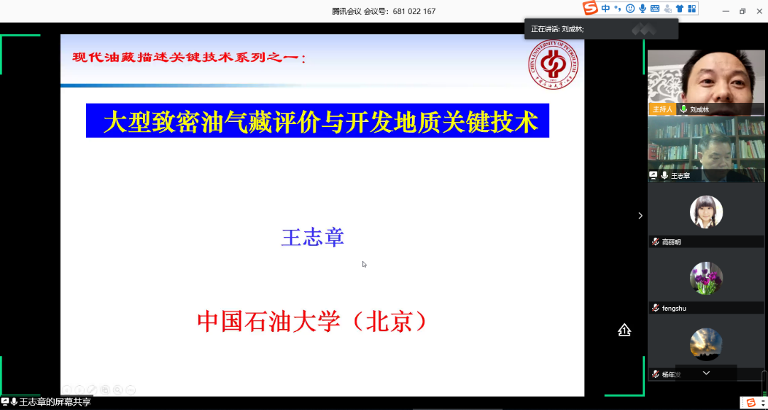 2020年4月29日晚,地球科學學院油氣勘探與開發(fā)地質系通過騰訊會議以線上學術交流的形式,成功舉辦了第三十八期的學術沙龍。本期學術沙龍以“大型致密油氣藏評價與開發(fā)一體化關鍵技術”為主題,由地球科學學院王志章教授主講、劉成林教授主持,約280位校內外師生及專家共同參加了此次學術活動。