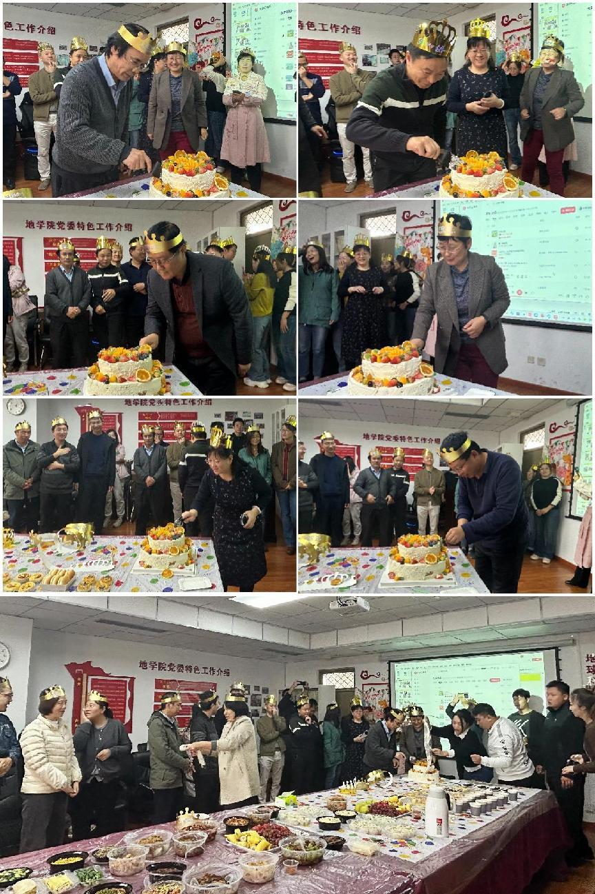 在秋風(fēng)送爽、金桂飄香的美好時節(jié),為了進(jìn)一步增強(qiáng)教師隊(duì)伍的凝聚力,營造溫馨和諧的工作氛圍,10月31日中午,地球科學(xué)學(xué)院學(xué)院工會精心組織集體生日會。此次活動不僅為第三季度和十月生日的老師們送上了一份特別的祝福,也讓全體教職工感受到了學(xué)院大家庭的溫暖與關(guān)懷。