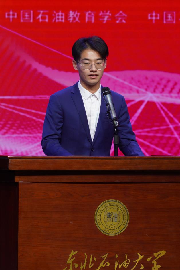 地球科學學院2021級碩士研究生孫笑凡作為獲獎學生代表在閉幕式上發言。他表示,希望和隊友們一起再接再厲,以賽促學、以學促能,為石油行業的發展壯大貢獻力量。