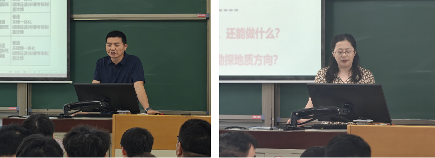 隨后,羅情勇、余一欣、孫海濤、劉鈺銘、陳冬霞教授分別圍繞油氣地球化學、構造地質學、沉積學與儲層地質學、油氣田開發地質、油氣田勘探地質學五個研究方向,詳細解讀師資團隊構成,并分享學科前沿動態與熱點問題,為學生考研方向選擇提供專業依據。