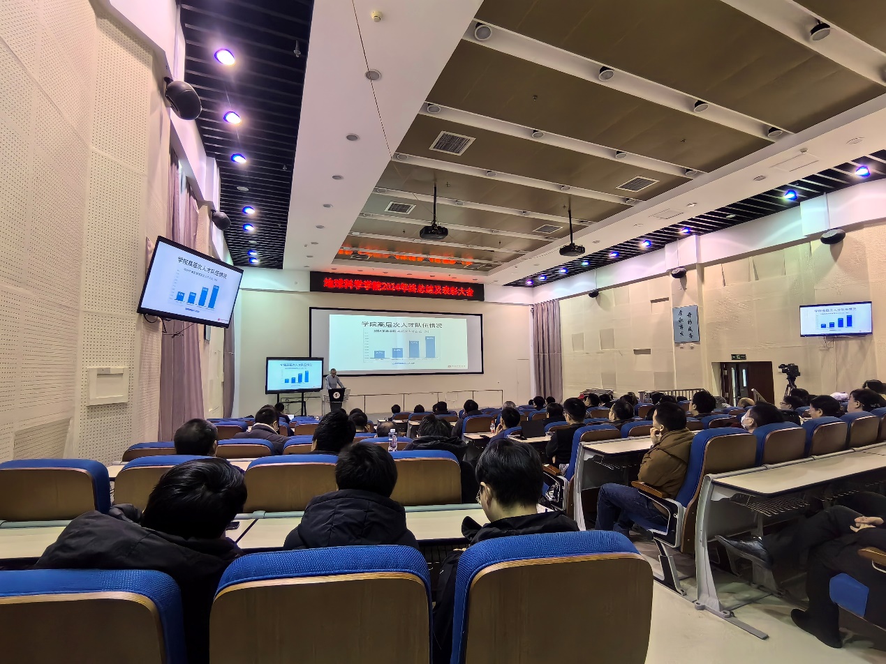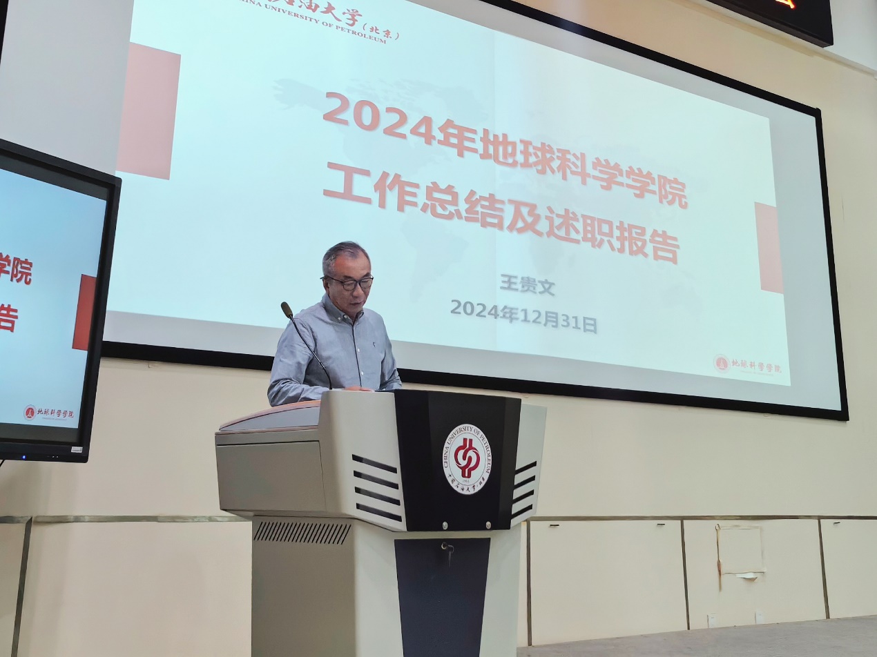 2024年12月31日下午,地球科學學院舉行2024年學院領導述職暨教職工年終總結表彰大會。學院黨委書記姜福杰、院長王貴文、黨委副書記王茹、副院長牛花朋、劉鈺銘、羅情勇以及全院教職工參加會議。大會由學院黨委書記姜福杰主持。