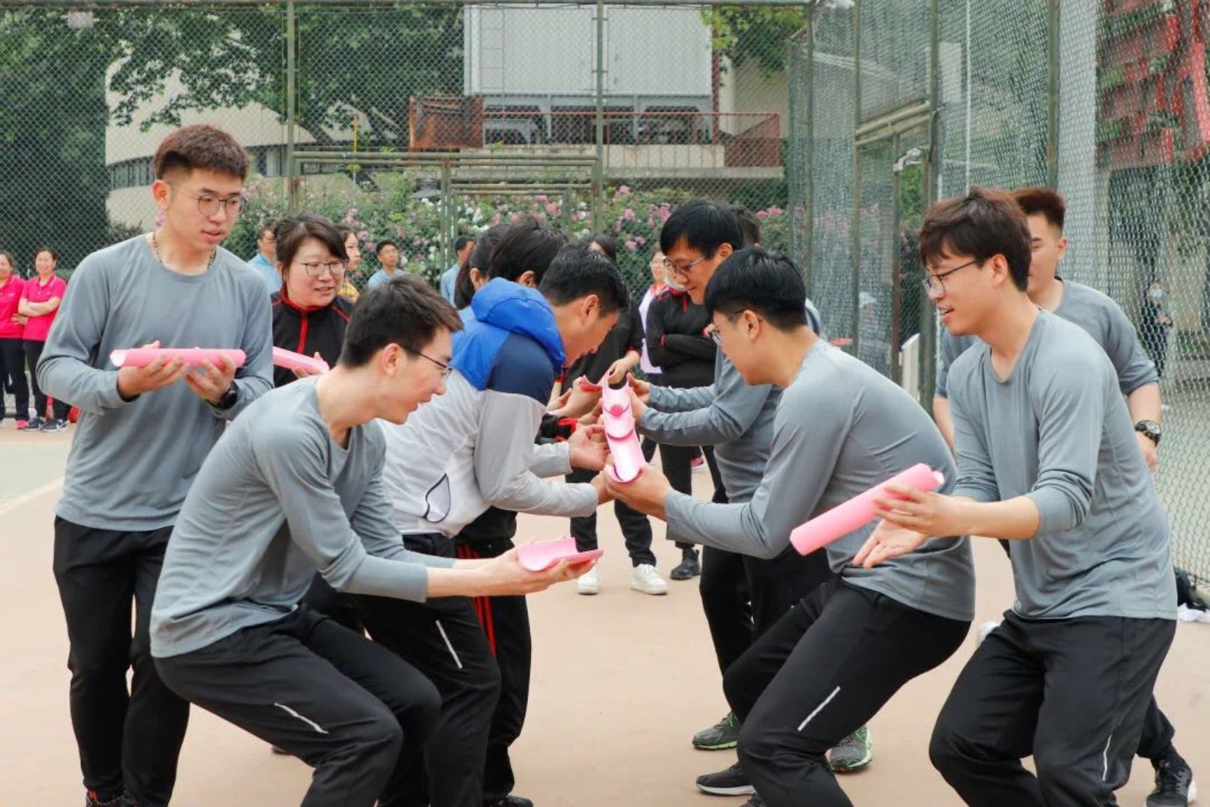 我院教職工共有200余人次參加了彩排、開幕式和個人和集體項目,是近些年來參加運動會人數最多的一次。教職工單獨參加了袋鼠跳、能量傳輸線等6個集體項目,與學生一起參加了彩虹飛舞和摸石頭過河2個師生集體混合項目,另外有11名教職工參加了男、女4×100米接力田徑項目和男、女1500米個人田徑項目。我院教職工26人次在能量傳輸線、毛毛蟲競速、摸石過河和男子4×100米接力等4個項目取得了好名次。運動員們在賽場上揮灑汗水,團結合作,頑強拼搏,超越自我,充分展現了學院奮發向上、團結一致、永創一流、獻身石油的理念和精神風貌。