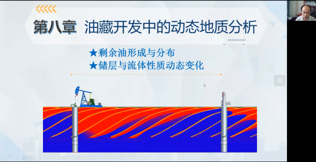 會(huì)議第二階段為示范課講授。吳勝和教授以油礦地質(zhì)學(xué)課程“第八章 油氣藏開(kāi)發(fā)地質(zhì)中的動(dòng)態(tài)地質(zhì)分析”中的“層間剩余油”為主題,從知識(shí)點(diǎn)導(dǎo)入、問(wèn)題鏈解析、師生互動(dòng)、信息工具使用、課程思政融入等方面對(duì)課堂教學(xué)元素進(jìn)行了展示,講授了一堂生動(dòng)的示范課。