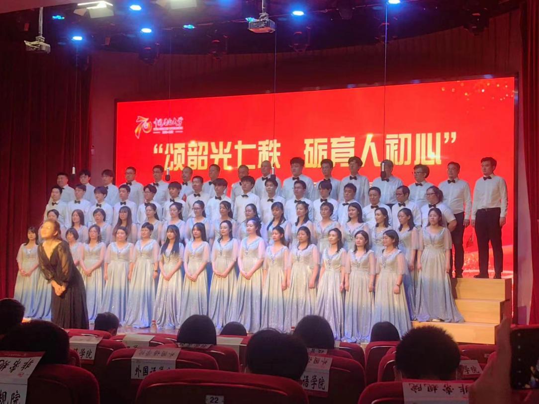本次合唱比賽是學(xué)校迎校慶重點(diǎn)活動之一。地學(xué)院師生在地學(xué)院黨委的領(lǐng)導(dǎo)下,由院工會組織學(xué)院廣大師生黨員和群眾聯(lián)合參加演出,聘請了專業(yè)的音樂老師進(jìn)行多次指導(dǎo)排練。我院選定《我為祖國獻(xiàn)石油》和《我和我的祖國》參與展演。