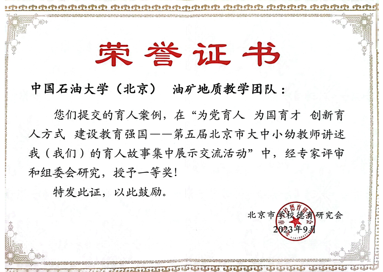 近日,第五屆北京市大中小幼教師講述我 (我們)的育人故事優(yōu)秀案例評(píng)選結(jié)果揭曉,中石大地球科學(xué)學(xué)院油氣勘探與開發(fā)地質(zhì)系的油礦地質(zhì)教學(xué)團(tuán)隊(duì)以“五代磨一課 賡續(xù)踐三心”為題的育人故事在北京市近萬名大中小幼教師中脫穎而出,榮獲一等獎(jiǎng)。