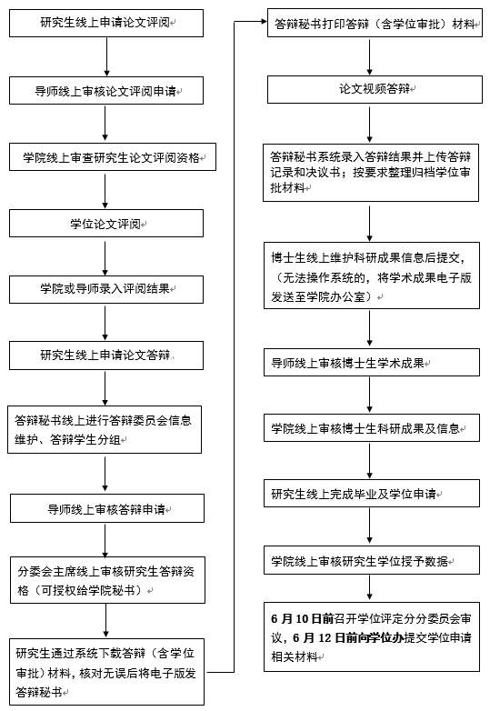 2、學術型碩士、博士生答辯截止時間:6月5日。由各學科負責人、各系(中心)負責人具體安排各答辯小組時間。