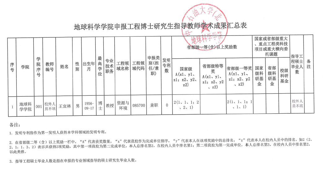2020年申報工程博士研究生指導老師材料公示