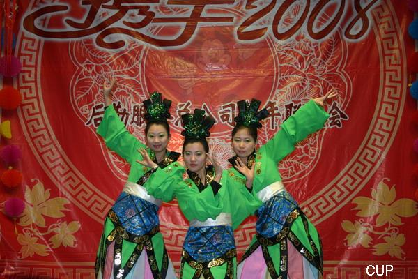 來自各部門的近600位新老職工同歡樂,共祝愿,辭舊迎新。舞臺的天幕上高掛著大紅的中國結,預示著來年后勤服務總公司的各項工作也將碩果累累,并襯托起聯歡會的主題:攜手2008。