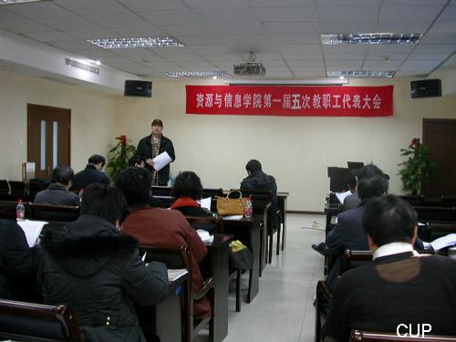 2008年1月9日,資源與信息學院第一屆五次教職工代表大會在資信學院學術報告廳召開,校工會常務副主席陳崇河出席了大會,并做了重要講話。 會上,代表們認真聽取了朱筱敏院長的《資源與信息學院二○○八年度工作總結暨二○○九年工作重點》、工會主席尹秀英的《齊心協力,共建民主和諧教職工小家》和院辦主任肖淑容的《資源與信息學院二○○八年財務工作報告》。分黨委書記陳小宏教授組織了討論,并做了大會總結。 在討論中,代表們充分行使參政議政的民主權利,討論、審議了上述報告,著重對資源與信息學院年終考核辦法和院人事制度等文件進行了討論,并提出了建設性的意見和建議,充分體現了代表們對學院工作和發展的關心、關注和主人翁精神。最后,代表們以舉手表決的方式通過了上述報告。