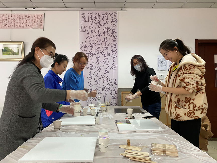 ] 為慶祝國際“三八”婦女節(jié),我院工會(huì)組織女教職工進(jìn)行流體畫創(chuàng)作活動(dòng)。流體畫是用顏料傾倒在畫面上,任其自然流淌而形成的現(xiàn)代抽象畫,呈現(xiàn)效果千變?nèi)f化,即使沒有任何繪畫基礎(chǔ),也可以畫出很驚艷的作品。在我校美術(shù)教師李玲的講解和幫助下,教師們積極創(chuàng)作,一個(gè)個(gè)充滿想象力、色彩繽紛的畫面展現(xiàn)出來,在制作過程中,老師們紛紛表示創(chuàng)作的過程輕松愉悅,陶冶情操,回味無窮,在充滿歡樂的笑聲中完成了流體畫的制作。通過本次活動(dòng),不僅使老師們的壓力得到釋放,還提高了大家的審美能力,在感受快樂與成就的同時(shí),也激勵(lì)著教師們保持飽滿的熱情積極的投身到工作中。
