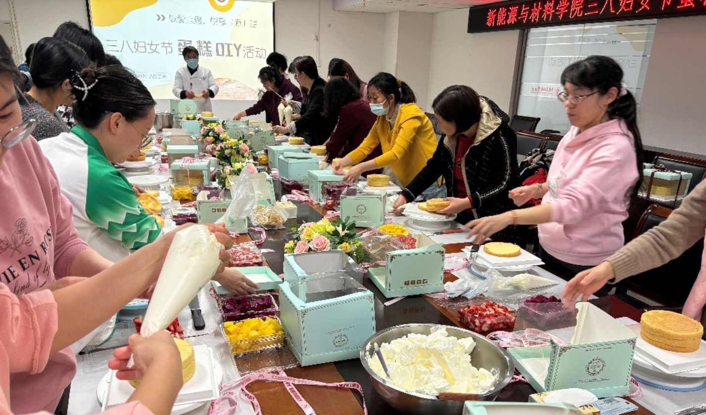 ] 為慶祝三八婦女節(jié)的到來,豐富女教職工精神文化生活,展現(xiàn)巾幗風(fēng)采,新能源與材料學(xué)院工會(huì)于3月7日面向女教職工舉辦了“以愛點(diǎn)綴,悅享‘新’甜”——三八婦女節(jié)蛋糕DIY活動(dòng)。