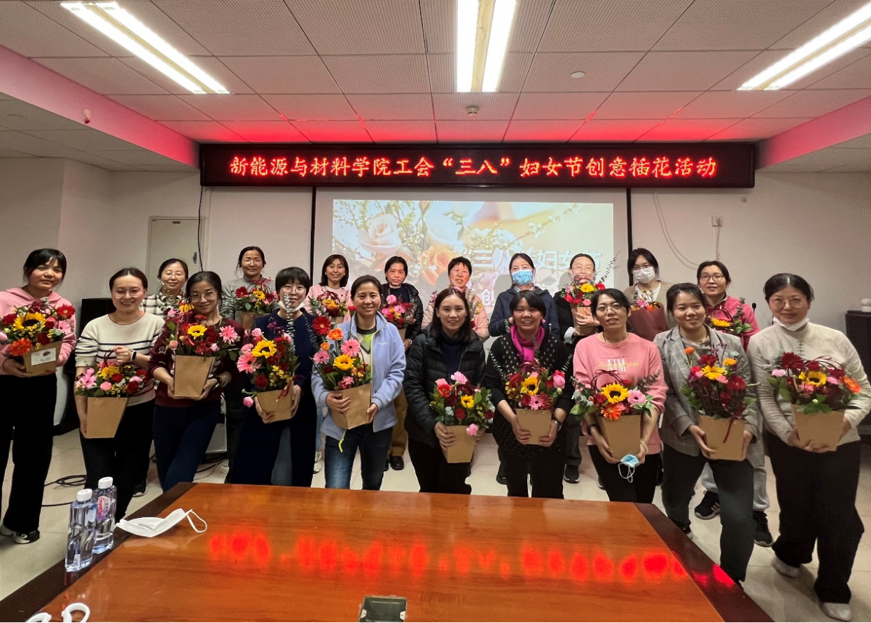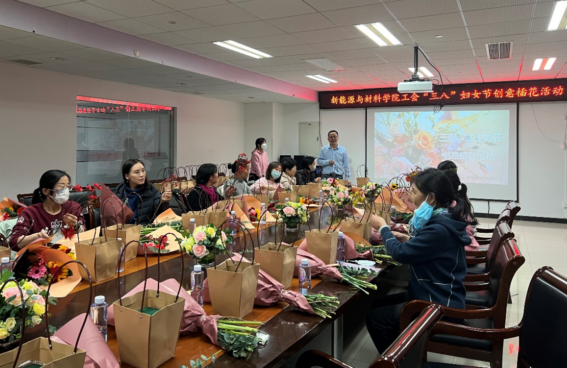 ] 遲日江山麗,春風花草香。花藝是中國傳統修身養性、陶冶身心的生活藝術。在第113個“三八”婦女節來臨之際,為了豐富學院女教職工的文化生活,營造濃厚的節日氛圍,3月3日下午,新能源與材料學院為女教職工們舉辦了創意插花活動。