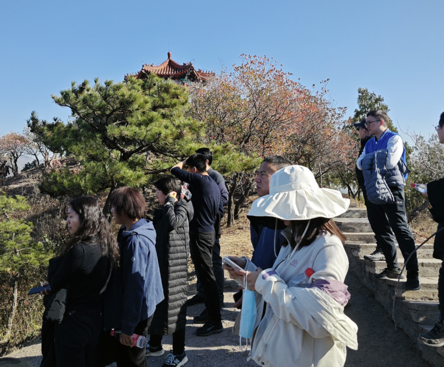 昌平后山位于中石化會議中心北側(cè),緊鄰十三陵水庫。老師們在登山途中,大家沐浴著秋日暖陽,呼吸著清新自然的空氣,體驗著運動帶來的激情和快樂。在后山登頂后俯瞰十三陵水庫和昌平縣城,周圍的美好景色盡收眼底,老師們還在歡聲笑語中認(rèn)真尋找石大標(biāo)志性高樓的具體位置,談?wù)撝魇甑脑敿毞植迹@是德陵、那是長陵……。在閑暇暢聊中,大家的工作壓力得到有效緩解。