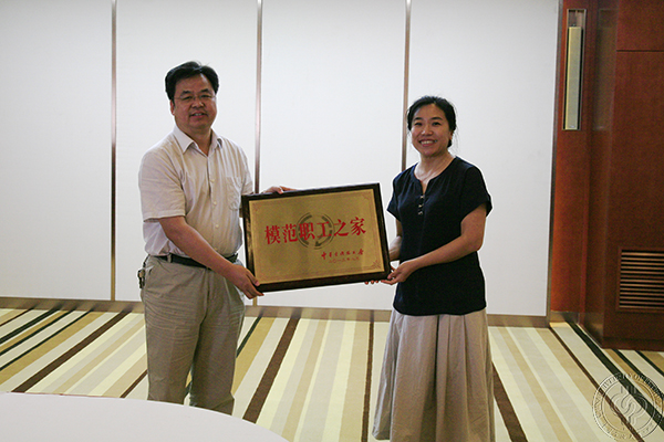會后,專家組查閱了工會工作的基礎資料,實地考察了教工活動中心。在全面了解石大工會的工作情況后,專家組一致同意中國石油大學通過“全國模范職工之家”驗收檢查。劉歡代表專家組對學校工會工作給予了高度評價:一是黨政領導高度重視,支持力度大,做到政治上把關,政策上落實,工作上依靠,物質上保證,在經費和場地上給予了大力支持;二是民主渠道暢通,工作規范,教代會及二級教代會制度完善;三是關注教職工隊伍素質提高,為教職工發展搭建平臺;四是關愛教職工身心健康,為他們辦好事、做實事;五是工會工作規范、思路創新,特色突出,工會理論調研工作成績突出,二級工會之家建設活躍、有特色。同時,劉歡還對學校工會工作提出了幾點要求:一是要總結二級工會之家建設的成功經驗全校推廣;二是要多手段、多渠道、多種方式打造品牌活動;三是要創造性地做好校務公開工作。最后,劉歡為石大頒發“全國模范職工之家”獎牌。