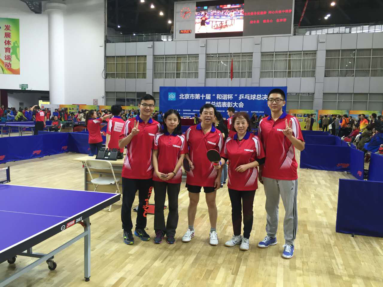 2016年10月22日,北京市第十屆“和諧杯”乒乓球總決賽在昌平體育館舉行,有市機(jī)關(guān)工委、市教委、市乒協(xié)等單位共計(jì)155支隊(duì)伍參加了比賽。由陶京梅老師、王大喜老師、王智、黃璞、顧祖豪組成的中國(guó)石油大學(xué)(北京)校乒乓球隊(duì)參加了本次比賽。石大師生發(fā)揚(yáng)友誼第一比賽第二的精神,并且不畏強(qiáng)敵,通過(guò)頑強(qiáng)拼搏,最終獲得了混合團(tuán)體賽第四名的優(yōu)異成績(jī)