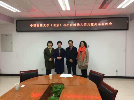 3月23日上午,中國石油大學校工會與昌平小金樹幼兒園共建合作協議簽字儀式在主樓A1323會議室舉行,雙方代表分別在合作協議上簽字。