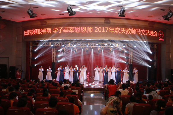 9月8日晚,在第33個教師節來臨之際,中國石油大學在校園藝術中心舉辦“秋果碩碩報春雨 學子莘莘慰恩師”慶祝教師節文藝晚會。副校長龐雄奇,相關職能部門負責人及石大附中、石大附小師生共同觀看了晚會。