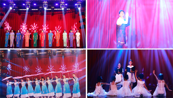 晚會在熱情洋溢的新疆舞《賽乃姆》中拉開帷幕。石大京劇社帶來的京劇聯唱《三家店》《穆桂英掛帥》《 武家坡》讓師生感受到了國粹的魅力;教職工陶笛協會表演了節目《感恩的心》,向全校教師獻上了節日祝福;石大風華雅韻模特隊帶來的旗袍秀驚艷全場,離退休教職工則演繹了優美的舞蹈《溪行桃花源》,展現了教師的良好精神風貌。石大附中、附小學生們先后表演了舞蹈《團戰》、音詩畫《我敬愛的老師》,用稚嫩的語言、真摯的情感向教師們送上了節日祝福;石大大學生藝術團的學生們表演了器樂合奏《雨碎江南》,大學生藝術團舞蹈團帶來的歌伴舞《五星紅旗》將晚會推向高潮。石大教職工合唱團還齊聲合唱《春天來到了我們戰場》、《我和我的祖國》,晚會在《我為祖國獻石油》全場大合唱的歌聲中落下帷幕。