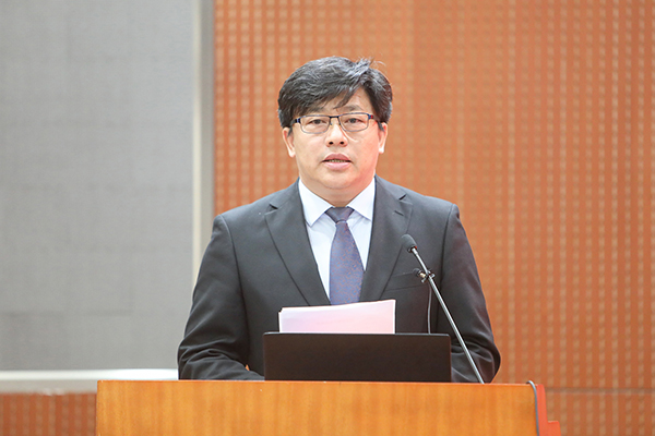 科學技術處、國有資產管理處相關負責人分別就《大型儀器設備管理辦法》《學院公用房有償使用基本思路》向大會作了說明。