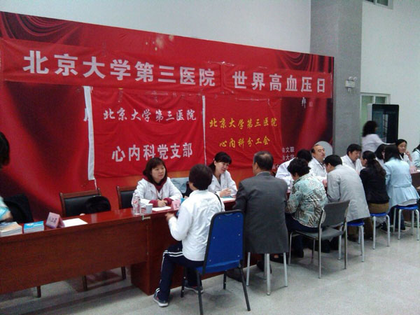 5月10日是“世界高血壓日”,中國石油大學在中油大廈一層舉辦了世界高血壓日義診活動,來自北京大學第三醫院心血管內科的6名主任醫師及6名主治醫師為300多名前來咨詢問診的師生進行了義診。