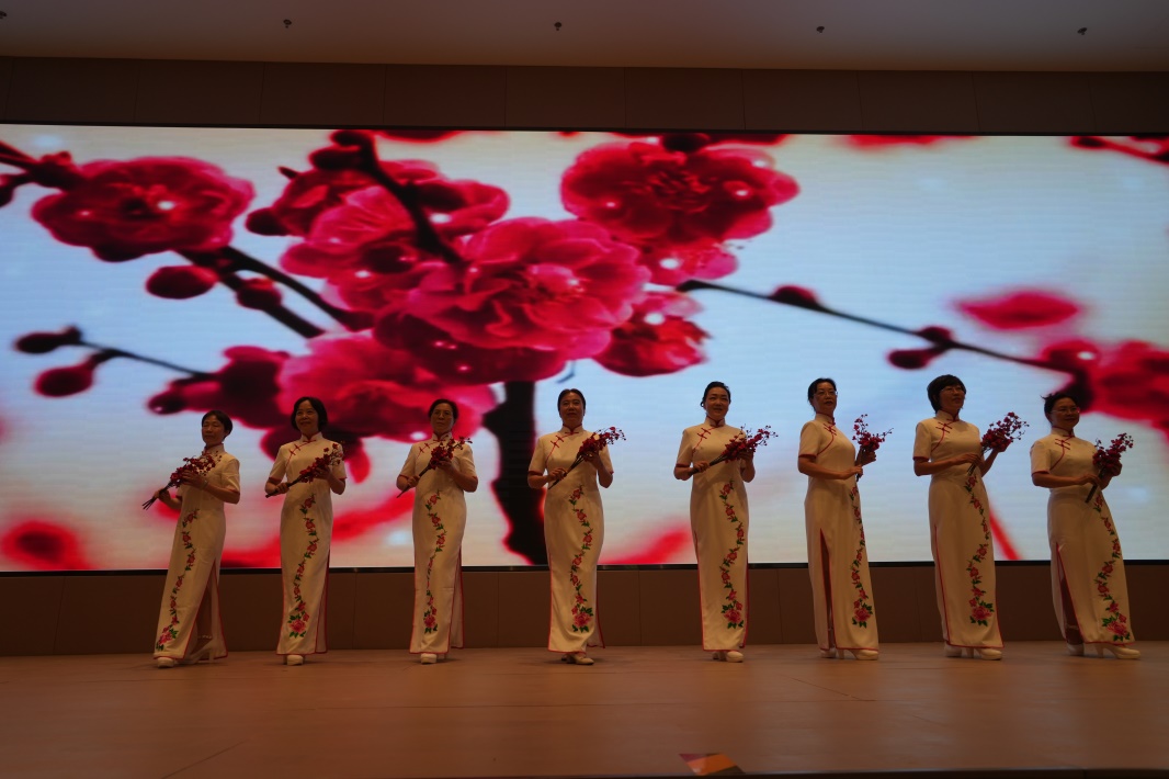 此次演出在陶笛曲目《北國之春》的表演中悠然奏響,展示了以陶笛、馬頭琴、旗袍秀、舞蹈和太極劍為主要形式的14個節(jié)目。悅耳動聽的笛聲、絢麗多姿的舞蹈將活動氛圍推向高潮。在37名陶笛演員和13名馬頭琴演員合奏的《龍的傳人》的樂曲聲中,演出圓滿結(jié)束。泰康燕園總經(jīng)理葛明為演出隊伍頒發(fā)“志愿服務(wù)證明”,并與全體演員合影留念。