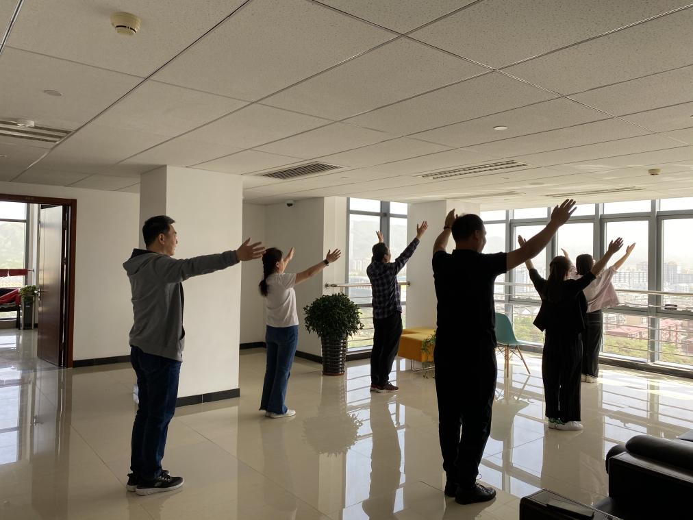 自4月初以來,在不影響工作的前提下,工作日上午10點(diǎn)整,職工們在主樓A座13層走廊東側(cè)自排成行,在歡快的氛圍中進(jìn)行兩遍工間操鍛煉,為運(yùn)動(dòng)會(huì)積極準(zhǔn)備。