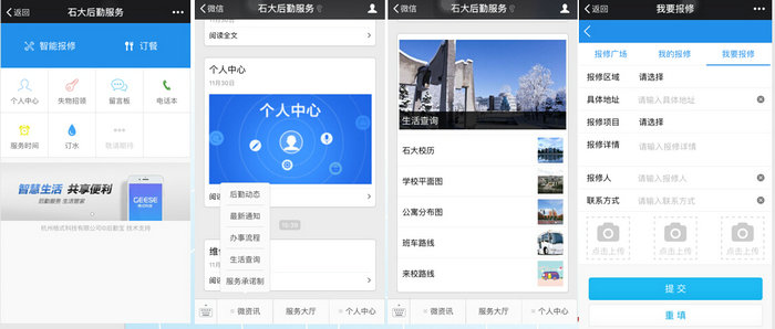 據了解,“石大后勤服務”微信公眾平臺作為學校首批上線的微信公眾號,自2013年9月運行以來,可以實現微信查詢服務電話、服務時間、意見反饋等后勤服務的各方面查詢功能,為進一步發揮微信在后勤服務中的作用,今年后勤聯合杭州格式科技公司對微信平臺功能進一步進行擴充,可以實現手機微信在線報修、訂餐、訂水等功能,目前各項功能正在開發中,近日將進行試運行。
