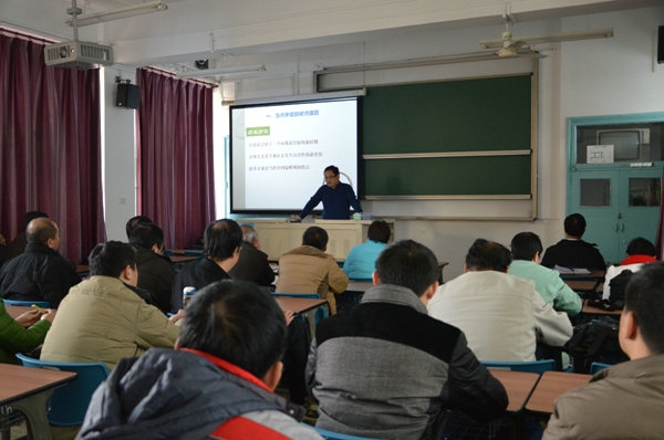 11月28日下午,石大后勤黨總支召開中心組擴大會議,組織后勤全體黨員在一教208聽取黨的十八屆四中全會精神輔導講座。