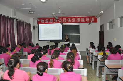 7月3日下午,物業(yè)服務(wù)公司在二教108教室開展了保潔技能培訓(xùn),后勤黨總支書記趙冬梅,人力資源版塊科長(zhǎng)王子軍及80余名保潔員參加了本次培訓(xùn)。