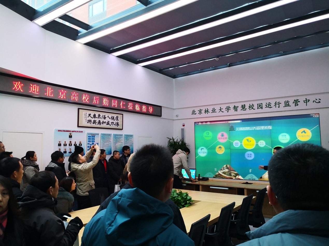 會后,北京林業(yè)大學(xué)展示了“北林智慧總務(wù)管理系統(tǒng)”,組織參觀了配電室無人值守系統(tǒng)。