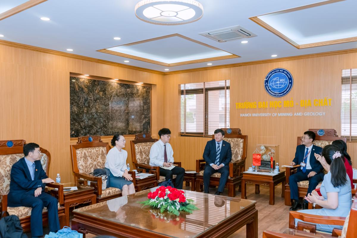 在河內礦業地質大學,該校副校長阮玉慶(Nguyen Ngoc Khanh)接待了韓克飛一行。作為世界能源大學聯盟成員高校,該校與中石大有著密切的交流與合作。雙方回顧了兩校的合作情況,圍繞世界能源大學聯盟建設、學生實習項目、國際聯合科研等領域的合作進行了交流。