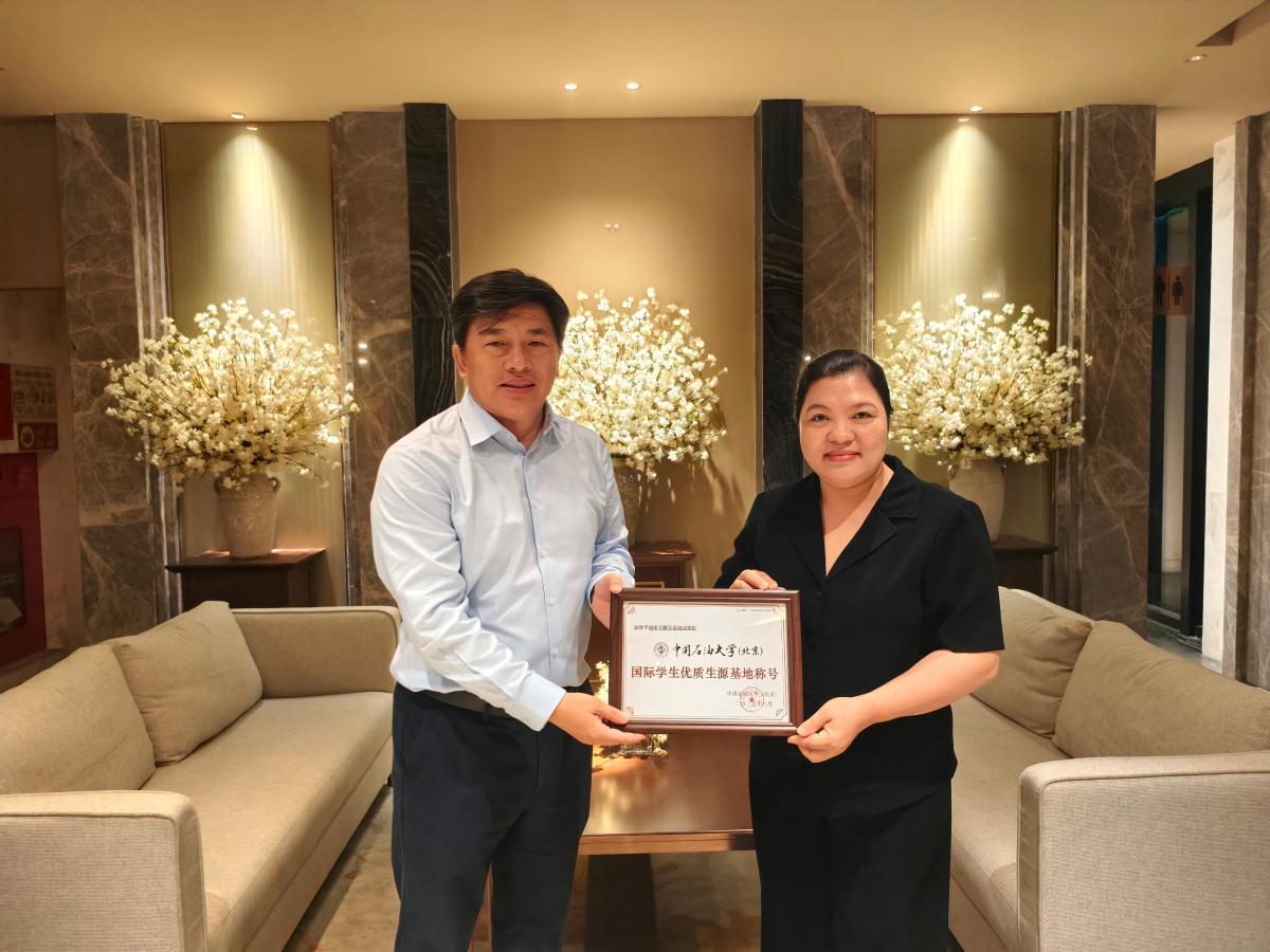 在元魁漢語培訓學校,韓克飛一行看望了新錄取至中石大的越南留學生,與學校負責人會談,感謝該校向中石大輸送優秀學生,并代表中石大向該校授予了“國際學生優質生源基地”證書。