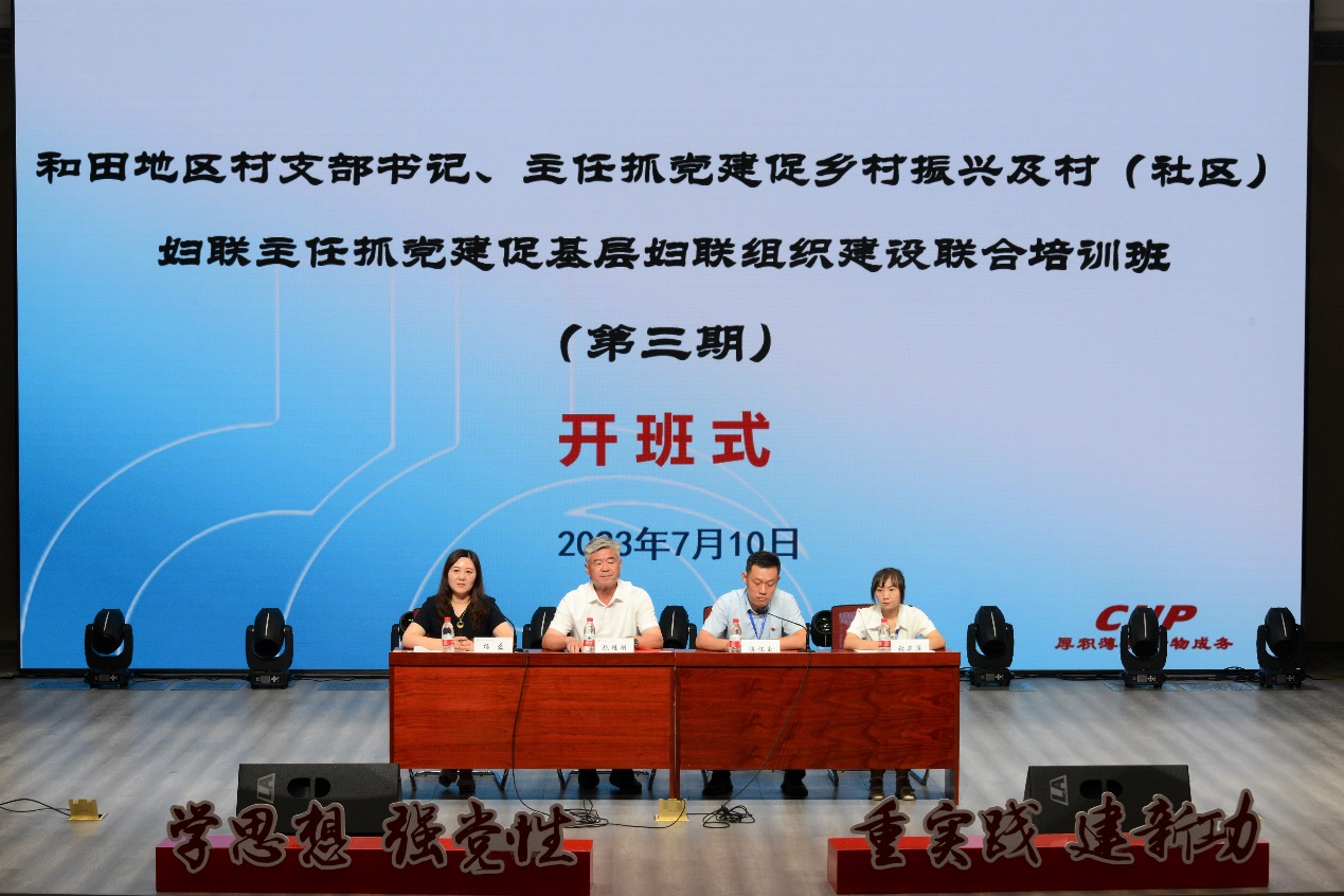 2023年7月10日上午,由中共新疆維吾爾自治區和田地區委員會組織部委托中國石油大學(北京)網絡與繼續教育學院承辦的“新疆和田地區村(社區)支部書記、村(居)委會主任和婦聯主席赴疆外輪訓項目(第三期)”順利開班,來自新疆和田地區的164位村(社區)支部書記、村(居)委會主任和婦聯主席參加。中國石油大學(北京)網絡與繼續教育學院院長陳桂剛出席開班式并致辭。開班式由網絡與繼續教育學院國際教育培訓中心主任楊磊主持。