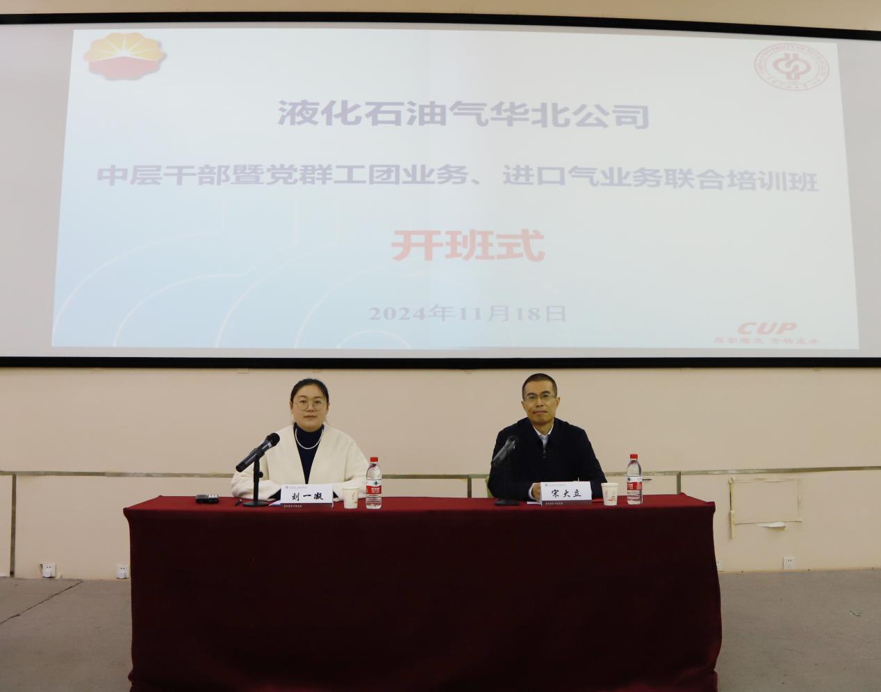 2024年11月18日,由中國石油大學(北京)繼續(xù)教育學院承辦的華北公司中層干部暨黨群工團業(yè)務、進口氣業(yè)務聯(lián)合培訓班在我校順利開班。液化石油氣華北分公司黨委書記、執(zhí)行董事宋大立,中國石油大學(北京)繼續(xù)教育學院副院長劉一凝出席開班儀式并講話。