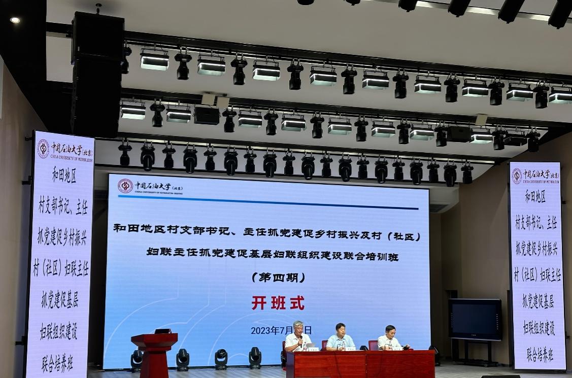 2023年7月24日上午,由中共新疆維吾爾自治區和田地區委員會組織部委托中國石油大學(北京)網絡與繼續教育學院承辦的“和田地區村支部書記、主任抓黨建促鄉村振興及村(社區)婦聯主任抓黨建促基層婦聯組織建設聯合培訓班(第四期)”順利開班。中共新疆維吾爾族自治區和田地區委員會組織部部長、黨校校長羅彥林、中國石油大學(北京)副校長張廣清出席開班式并講話,中國石油大學(北京)網絡與繼續教育學院院長陳桂剛主持開班儀式。