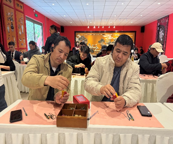 民建北京市委會(huì)副主委安庭,中共石景山區(qū)委統(tǒng)戰(zhàn)部分管日常工作的副部長高竹,工信部亞洲合作專項(xiàng)資金項(xiàng)目負(fù)責(zé)人王宇弘,民建北京市委會(huì)文化委員會(huì)主任陳工、民建石景山區(qū)工委主委汪禮俊、中國石油大學(xué)(北京)網(wǎng)絡(luò)與繼續(xù)教育學(xué)院副院長劉一凝等領(lǐng)導(dǎo)出席會(huì)議。我院國際人才發(fā)展中心主任楊磊老師帶領(lǐng)在京參加漢語培訓(xùn)的中國石油土庫曼斯坦公司的外籍學(xué)員應(yīng)邀參會(huì),與中方代表共同交流,為中國非遺走向國際出謀劃策。
