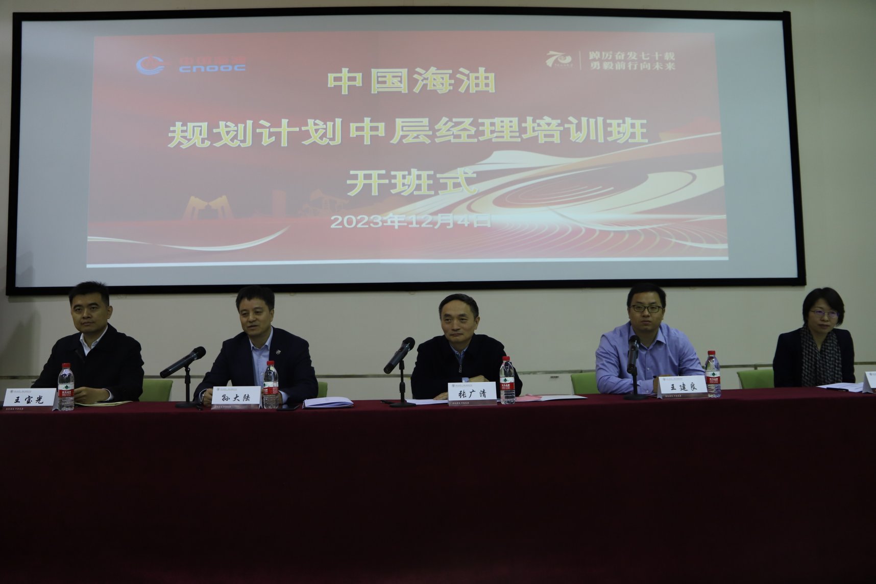 2023年12月4日,中國(guó)海油規(guī)劃計(jì)劃中層經(jīng)理培訓(xùn)班在學(xué)校第四教學(xué)樓401教室順利開(kāi)班,來(lái)自中國(guó)海洋石油集團(tuán)有限公司各工作部門、所屬單位的46名學(xué)員參加本期培訓(xùn)。中國(guó)海油總經(jīng)理助理兼規(guī)劃計(jì)劃部總經(jīng)理孫大陸和中國(guó)石油大學(xué)(北京)副校長(zhǎng)張廣清出席開(kāi)班式并講話。