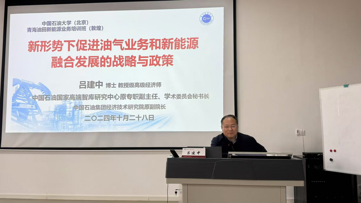 我院特別邀請了原中國石油經濟技術研究院副院長呂建中擔任首堂課程《新形勢下促進油氣業(yè)務和新能源融合發(fā)展的戰(zhàn)略與政策》的主講。為了使課程更具針對性,10月27日呂院長與青海油田新能源事業(yè)部的同事進行了深入交流,詳細了解了青海油田新能源業(yè)務的發(fā)展現狀和面臨的挑戰(zhàn)。10月28日,呂院長以一天的時間從宏觀層面闡述了能源轉型與新能源發(fā)展形勢,并分析了油田在新能源發(fā)展中的政策與策略,指明了未來的發(fā)展方向,正式為本期培訓拉開序幕。